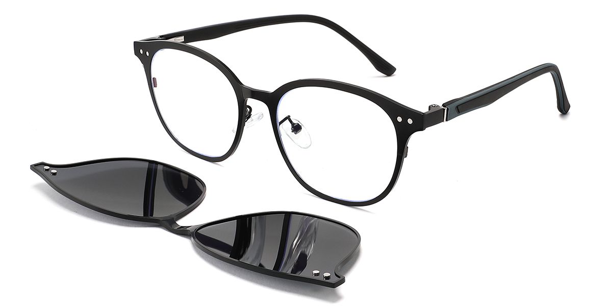 Round Blaack Metal Full-rim Bifocal & Progressive, Adjustable Nose Pads, For Wide Face, For Low Nose Bridge, Clip Ons Glasses