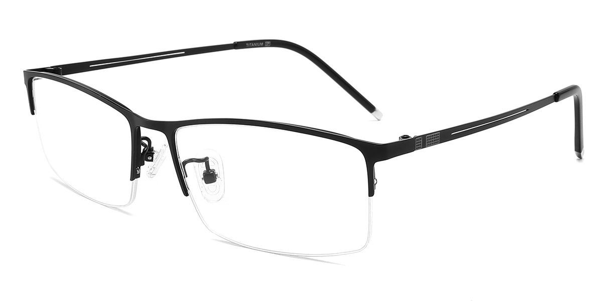 Rectangle Black Metal Semi Rimless Lightweight, Bifocal & Progressive, Adjustable Nose Pads, For Wide Face, For Low Nose Bridge Glasses