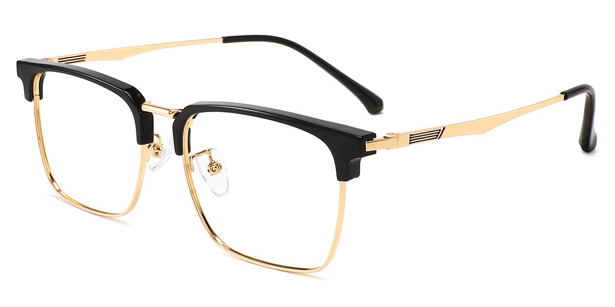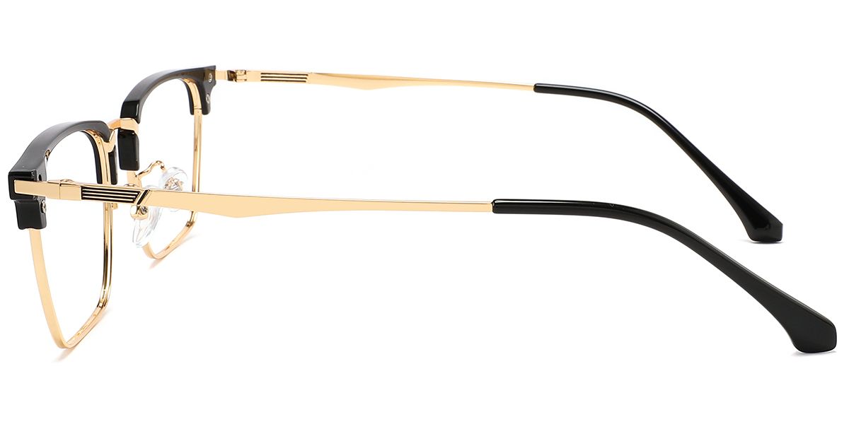Square Black Gold Metal Full-rim Bifocal & Progressive, Adjustable Nose Pads, For Wide Face, For Low Nose Bridge Glasses