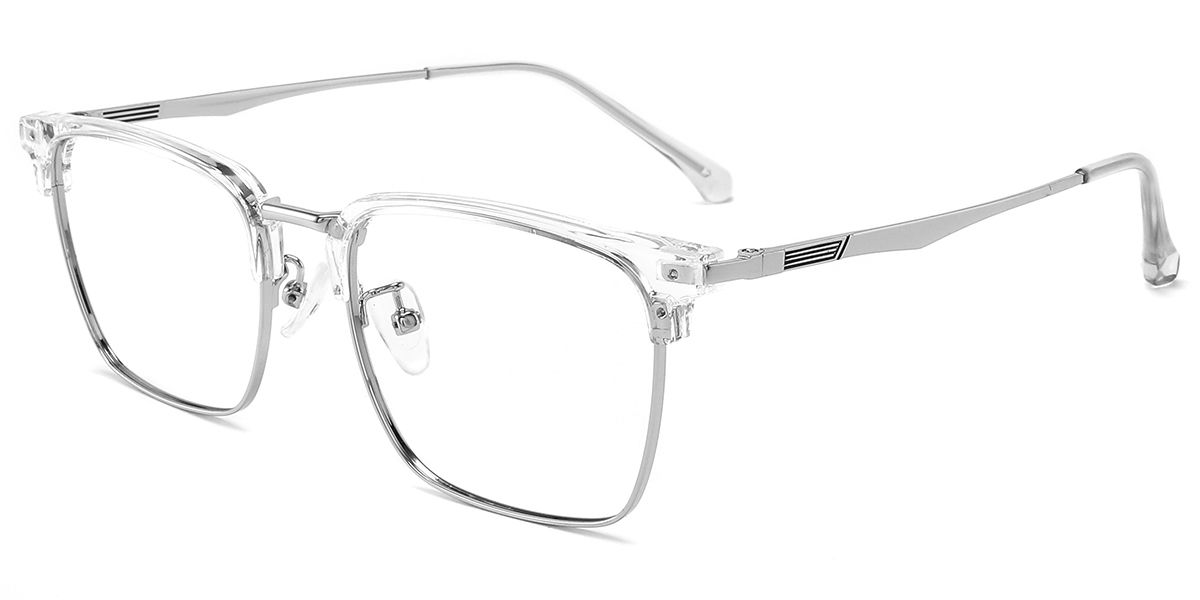 Square Clear Metal Full-rim Bifocal & Progressive, Adjustable Nose Pads, For Wide Face, For Low Nose Bridge Glasses