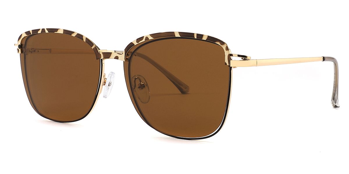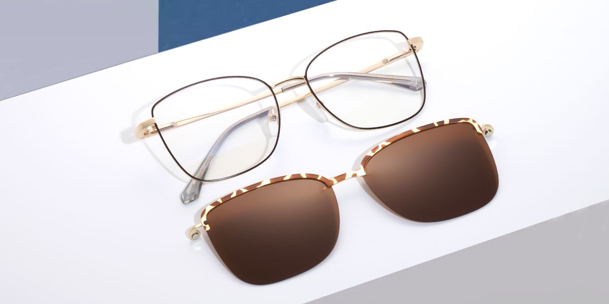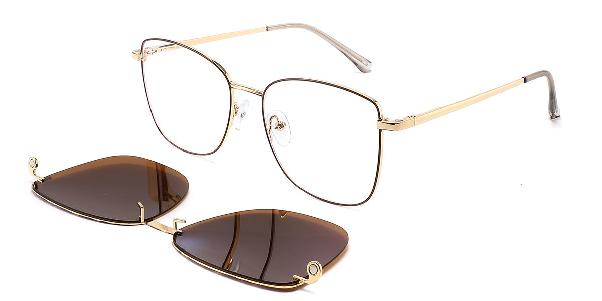 Square Brown Metal Full-rim Bifocal & Progressive, Adjustable Nose Pads, For Wide Face, For Low Nose Bridge, Clip Ons Glasses