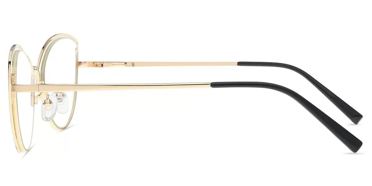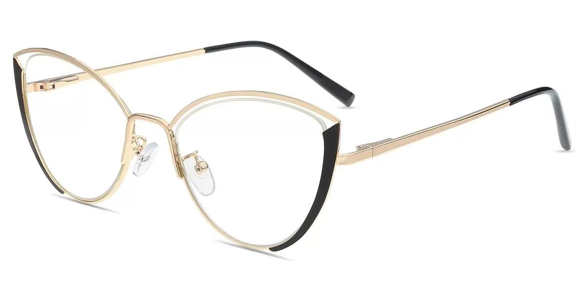 Cat Eye Gold Black Metal Full-rim Bifocal & Progressive, For Small Face, Adjustable Nose Pads, For Low Nose Bridge, Spring Hinge Glasses