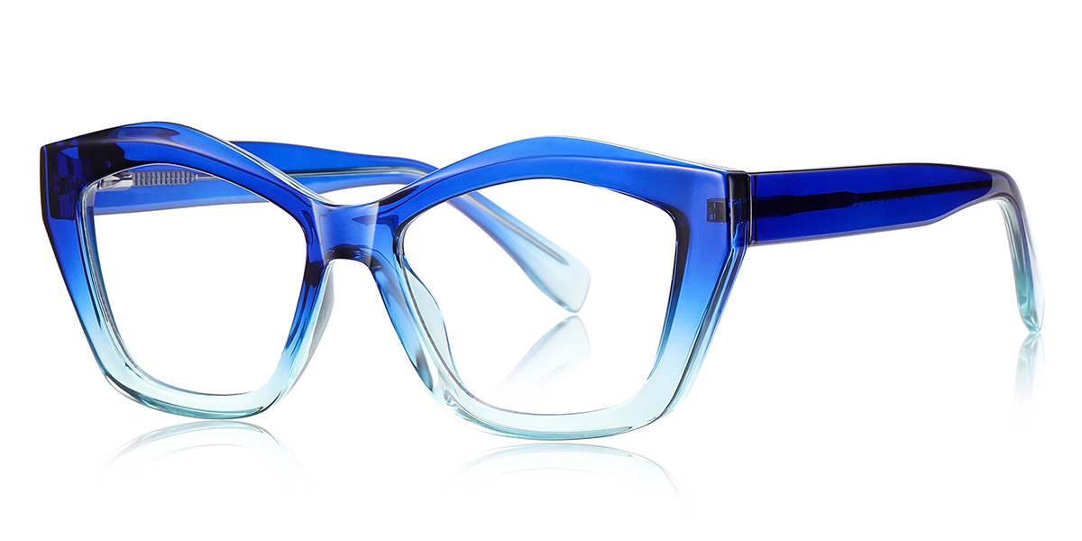 Cat Eye Blue Acetate Full-rim Bifocal & Progressive, For Small Face, Spring Hinge Glasses