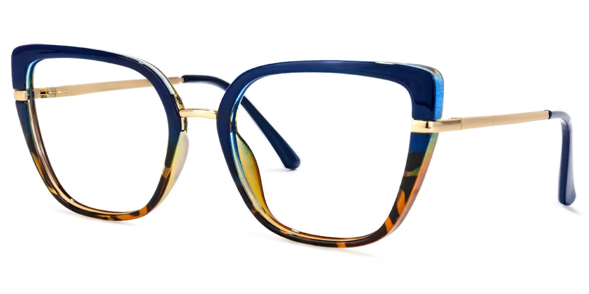 Blue Acetate-metal Full-rim Bifocal & Progressive, For Wide Face Glasses