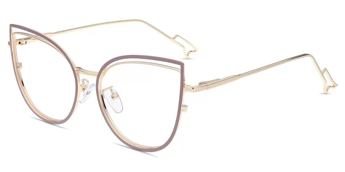 Cat Eye Purple Gold Metal Full-rim Bifocal & Progressive, For Small Face, Adjustable Nose Pads, For Low Nose Bridge, Spring Hinge Glasses