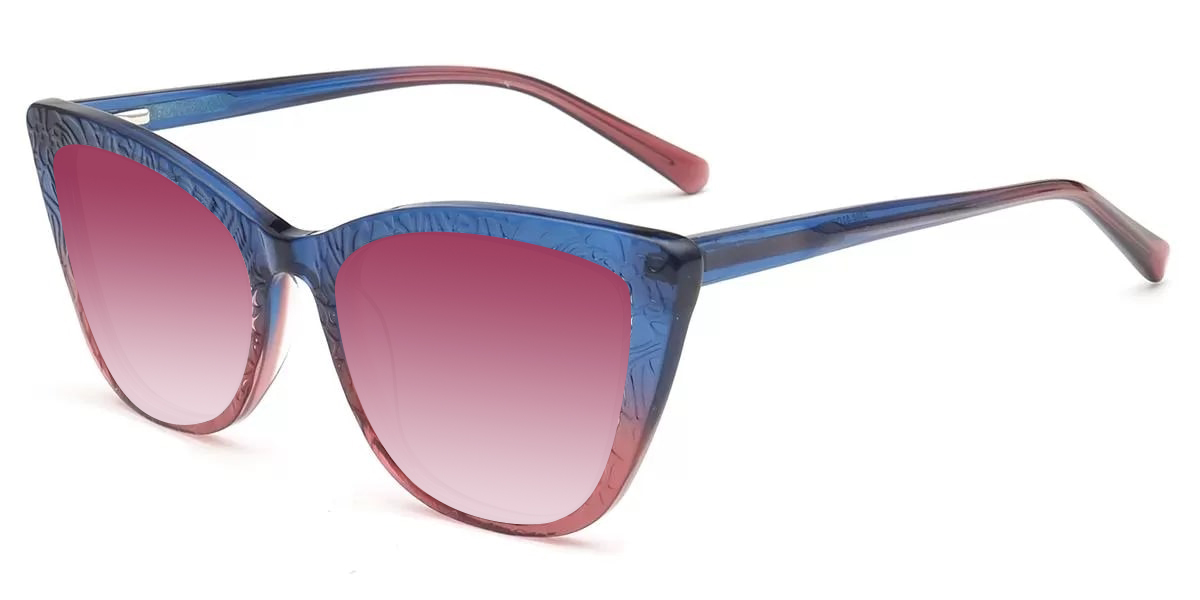 Cat Eye Blue Burgundy Acetate Full-rim Bifocal & Progressive, For Small Face, Spring Hinge Glasses