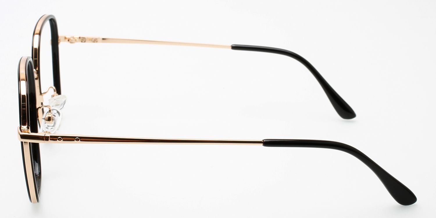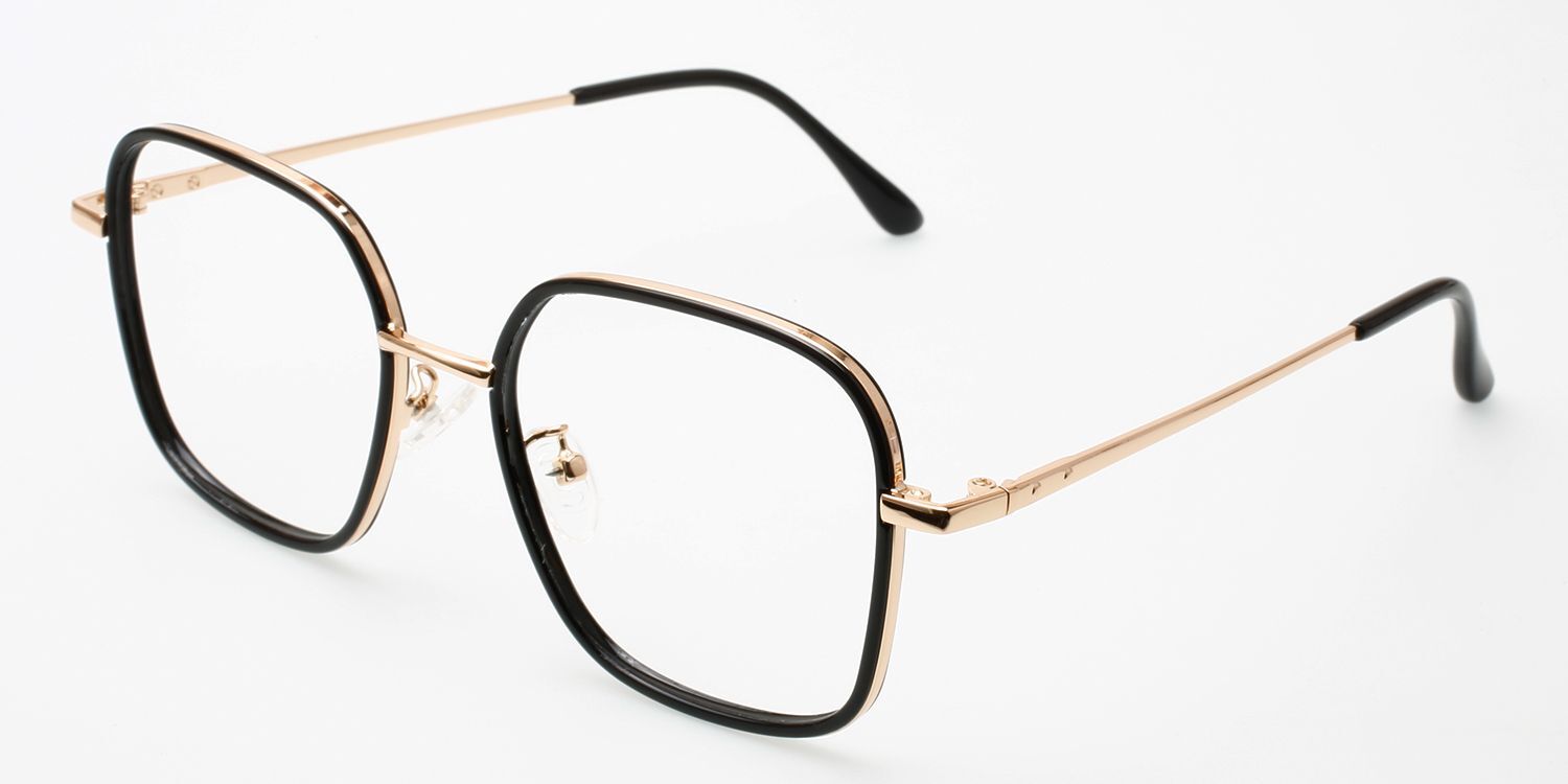 Square Black Gold Acetate-metal Full-rim Bifocal & Progressive, Adjustable Nose Pads, For Wide Face, For Low Nose Bridge Glasses