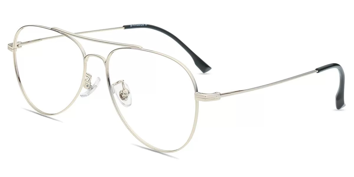 Aviator Silver Titanium Full-rim Lightweight, Bifocal & Progressive, For Small Face, Adjustable Nose Pads, For Low Nose Bridge Glasses