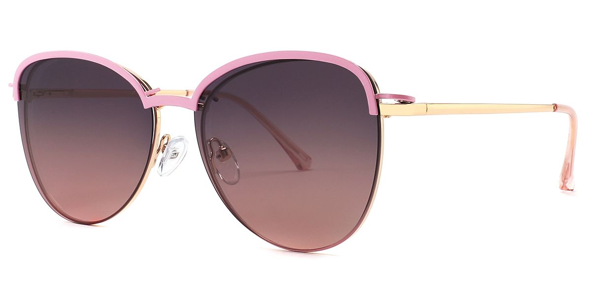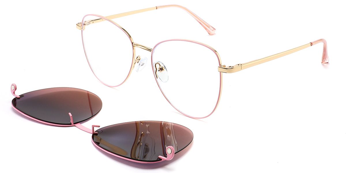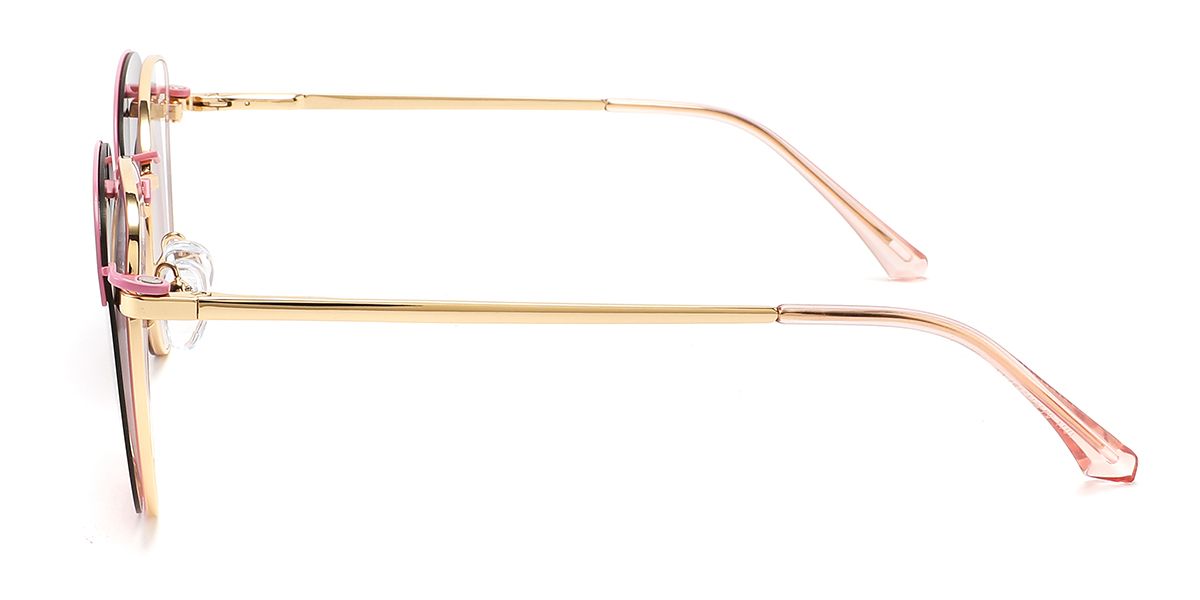 Round Pink Metal Full-rim Bifocal & Progressive, Adjustable Nose Pads, For Wide Face, For Low Nose Bridge, Clip Ons Glasses