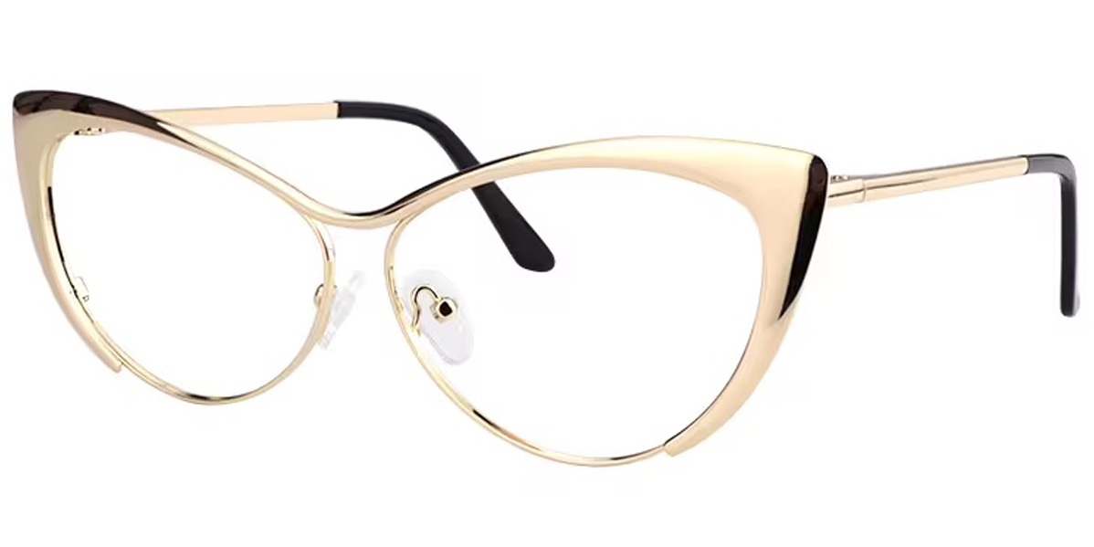 Cat Eye Gold Acetate-metal Full-rim Bifocal & Progressive, For Wide Face Glasses